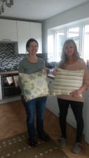 3 friends enjoying sewing classes together over a period of 4 classes at Holly's house in Melbourne, Cambridge. They very successfully completed their reversible Tote bags and Makeup bags.