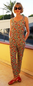 . The jumpsuit bodice is shaped with bust darts and a sweetheart neckline, with a comfortable blousy waist, wide (bra-concealing!) shoulder straps, closing with an invisible zip at the side, the relaxed peg-shaped trousers are easy-fitting at the hip, with slash pockets for nonchalant slouching, tapering into a slim line ankle.